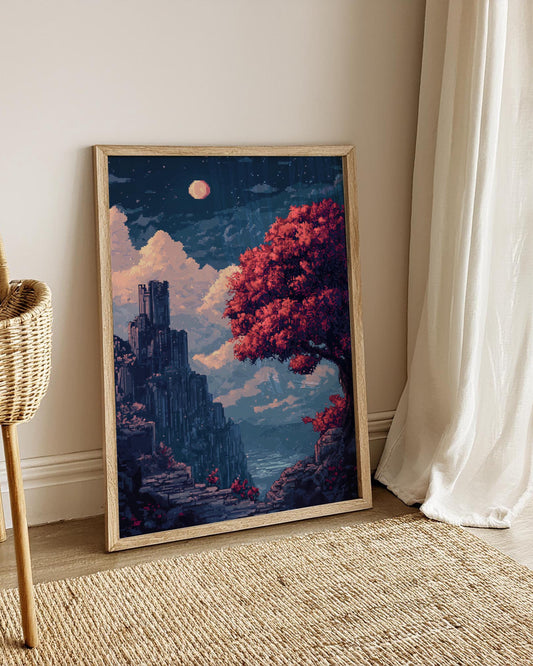 8 bit Pixel Art Landscape Poster, Matte Vertical Wall Art, Home Decor, Vintage Art Print, Gift for Art Lovers, Cozy Aesthetic Decorations